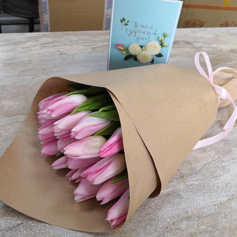 Тюльпаны - 15 шт. Упаковка Лента
