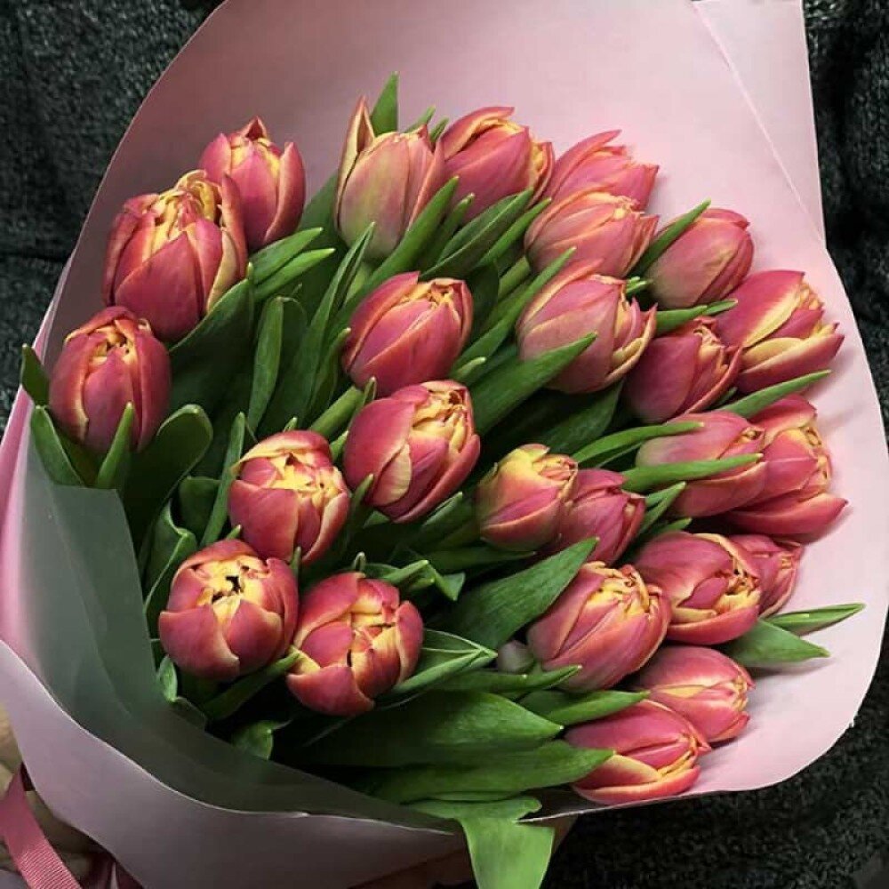 Тюльпаны -21 шт. Цвет на выбор Упаковка Лента