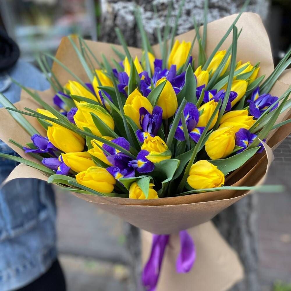 Ирисы - 17 шт. Тюльпаны - 20 шт. Упаковка Лента