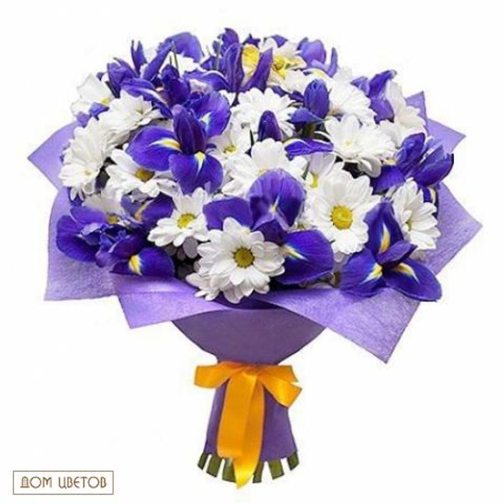Хризантема"ромашка" -7шт. Ирисы - 11шт. Фетр Лента